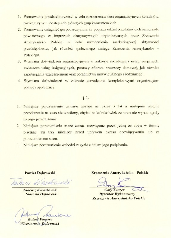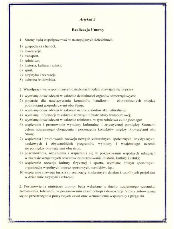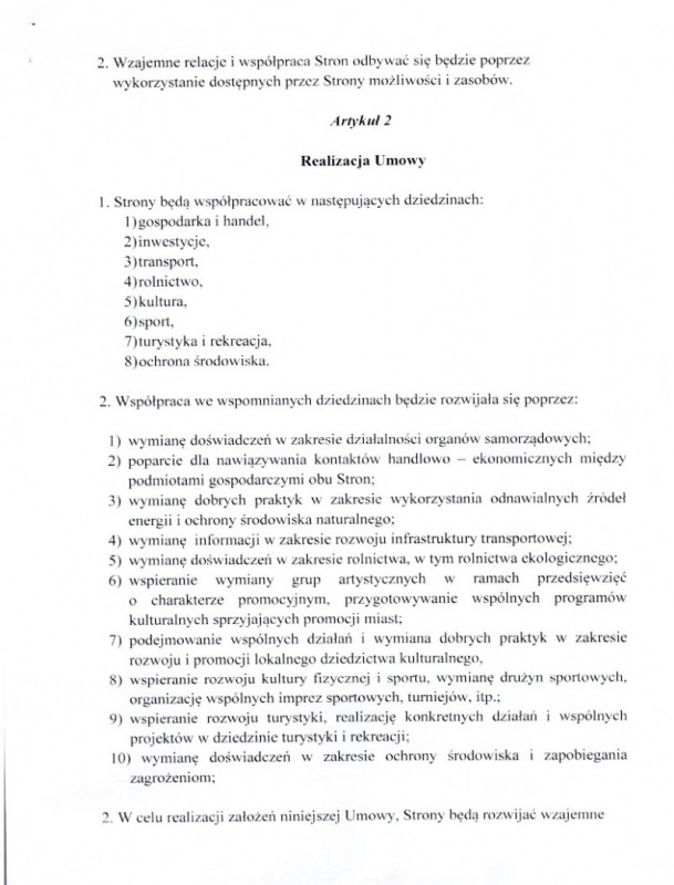Współpraca polega na wymianie doświadczeń promocyjnych, wsparcia społecznego i poszerzania dostępu do zasobów biznesowych i społecznych w tym pozyskania inwestorów do strefy aktywności gospodarczej.