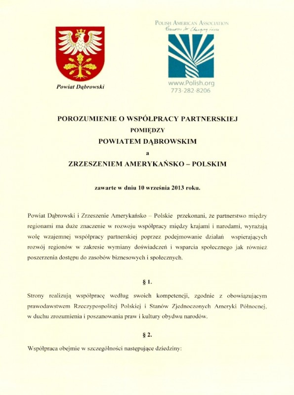 Porozumienie o współpracy zostało podpisane 10 września 2013 r.