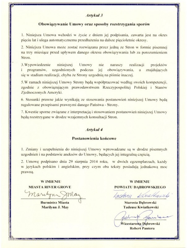 Porozumienie o współpracy zostało podpisane 29 sierpnia 2014 r.