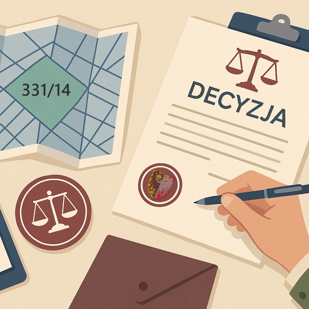 Obwieszczenie Starosty Oleśnickiego o wydaniu decyzji administracyjnej w sprawie ustalenia odszkodowania za nieruchomość nr 331/14, obręb Sokołowice